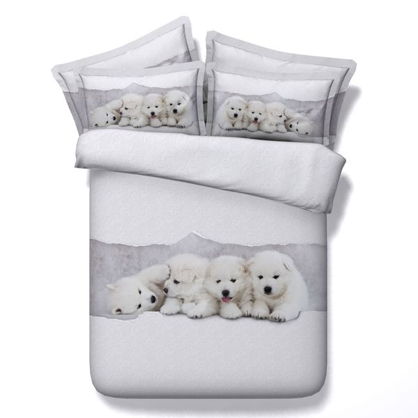 3d Adorable Bedding Sets Dog Duvet Cover Puppy Bedspreads White