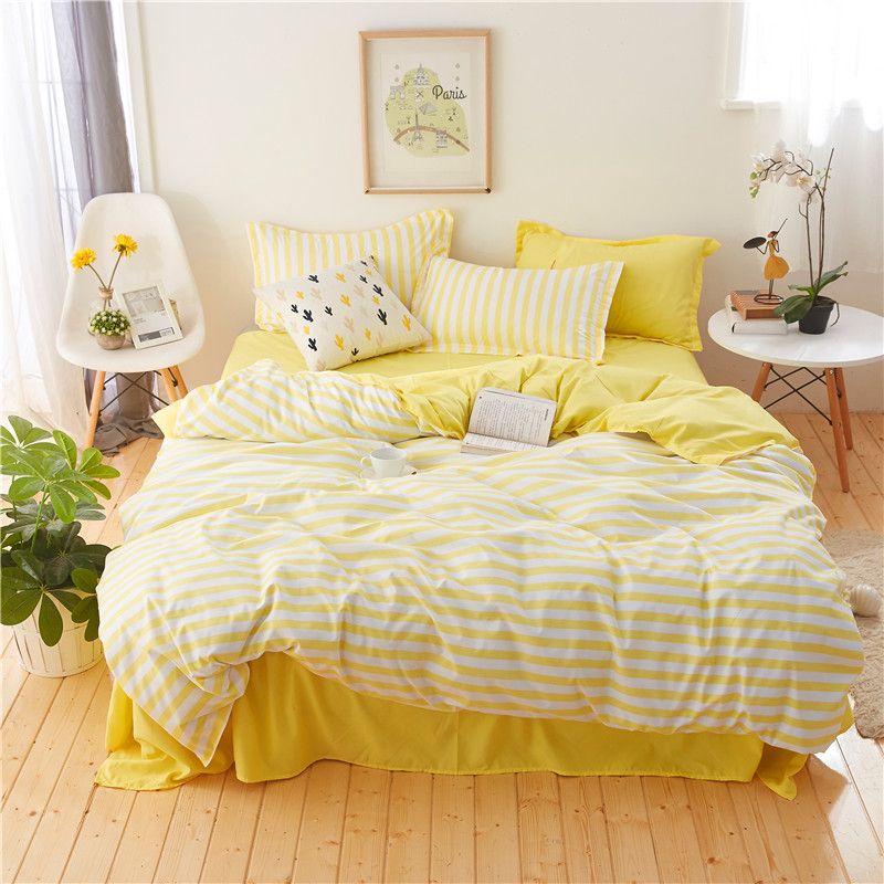 Trendy Yellow White Stripe Pattern Home Textiles Bedclothes 4pc